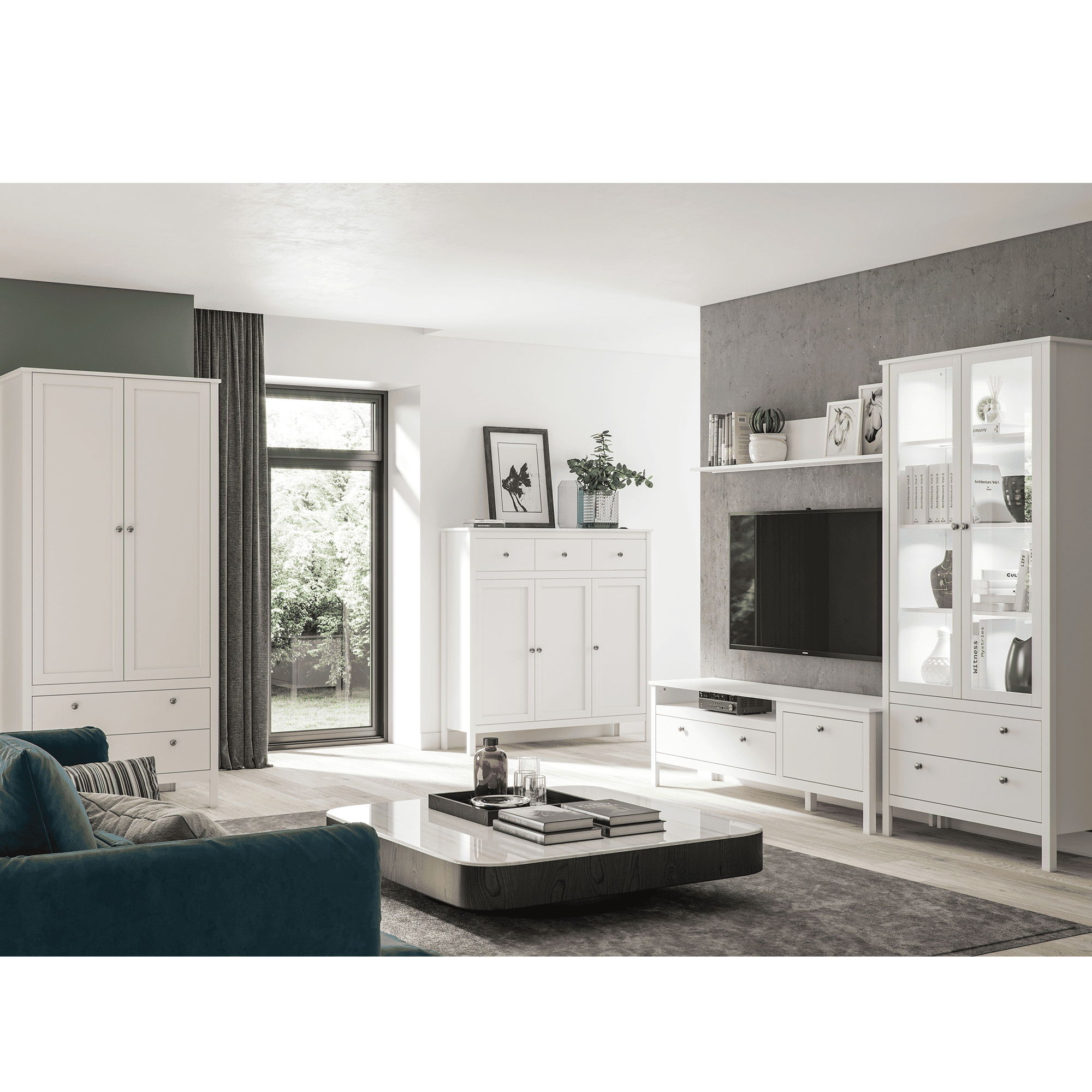 Vitrină 2W2S, alb, OLJE