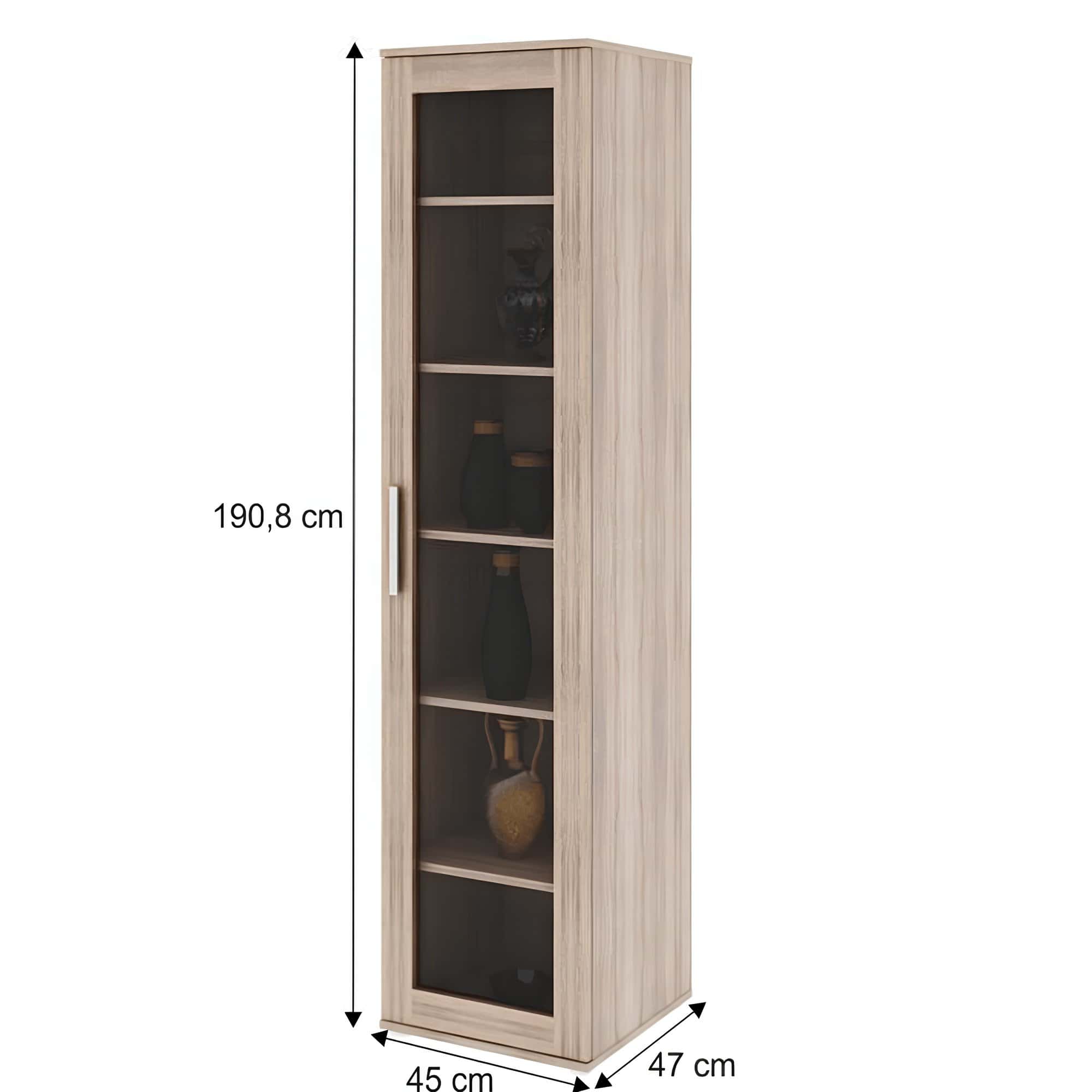 Dimensiunile vitrinei cu sticlă (LxHxA): 45×190,8×47 cm. Grosimea materialului: 16 mm
