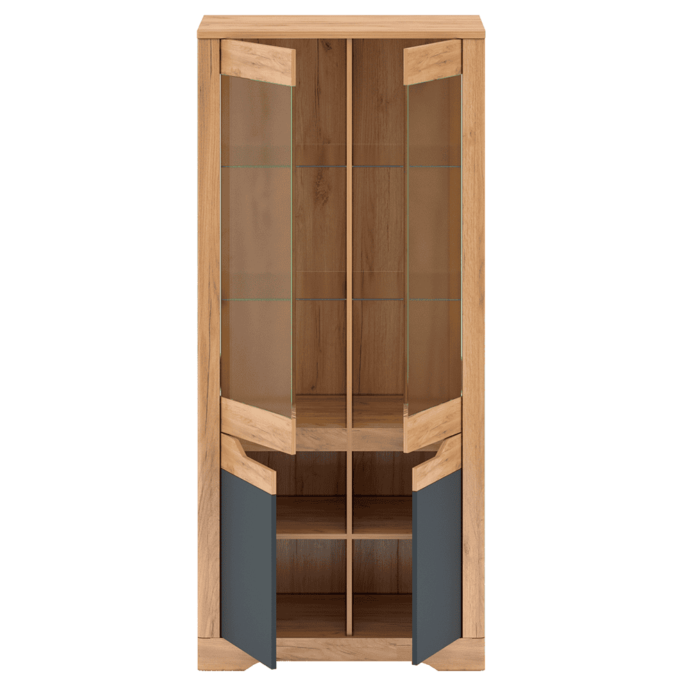 Vitrină H, stejar craft auriu / gri grafit, FIDEL