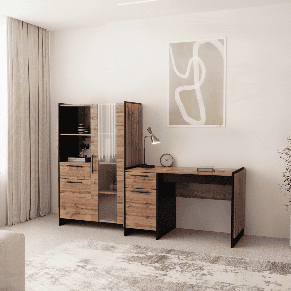 Vitrină joasă, stejar wotan/negru, AMONI 1D1W1S