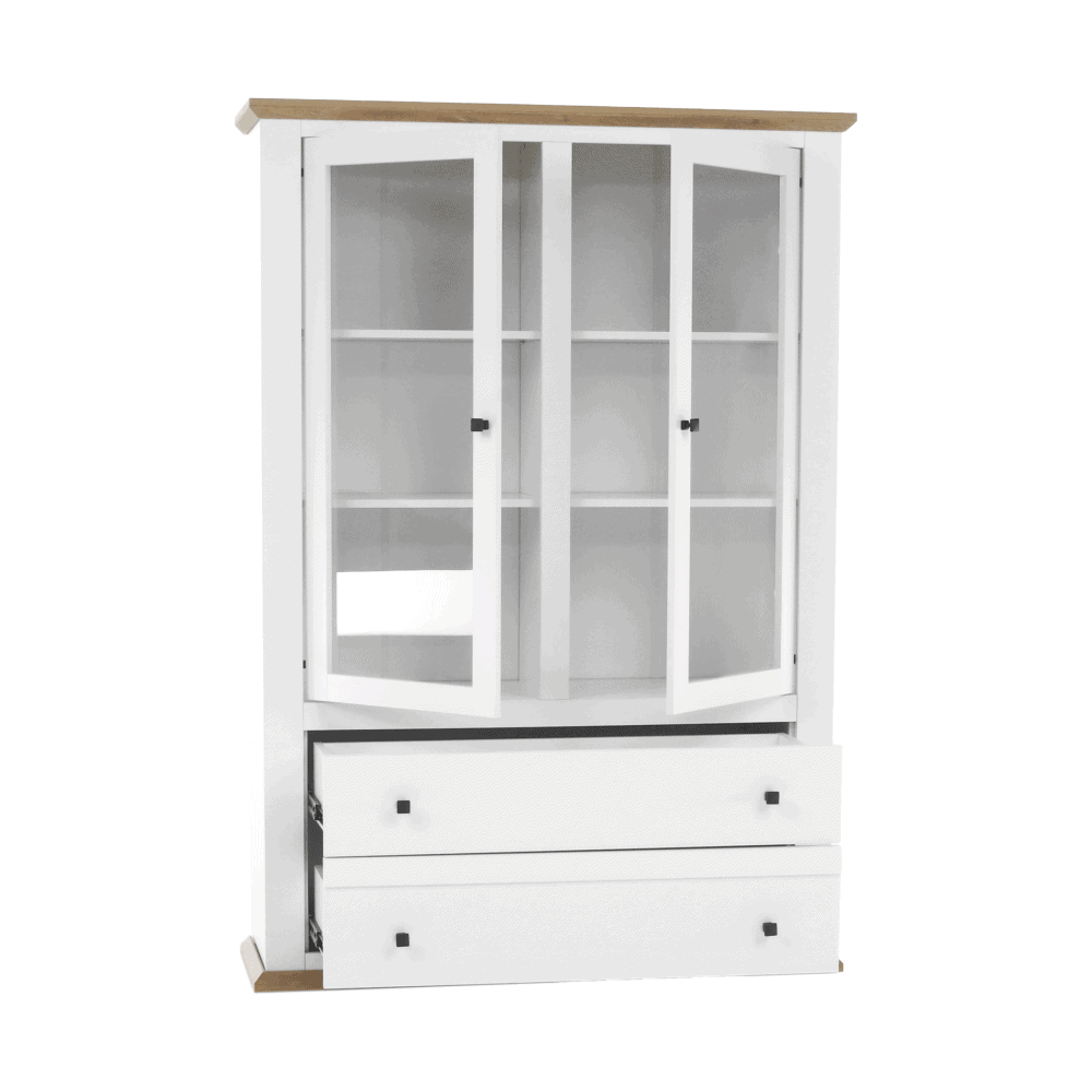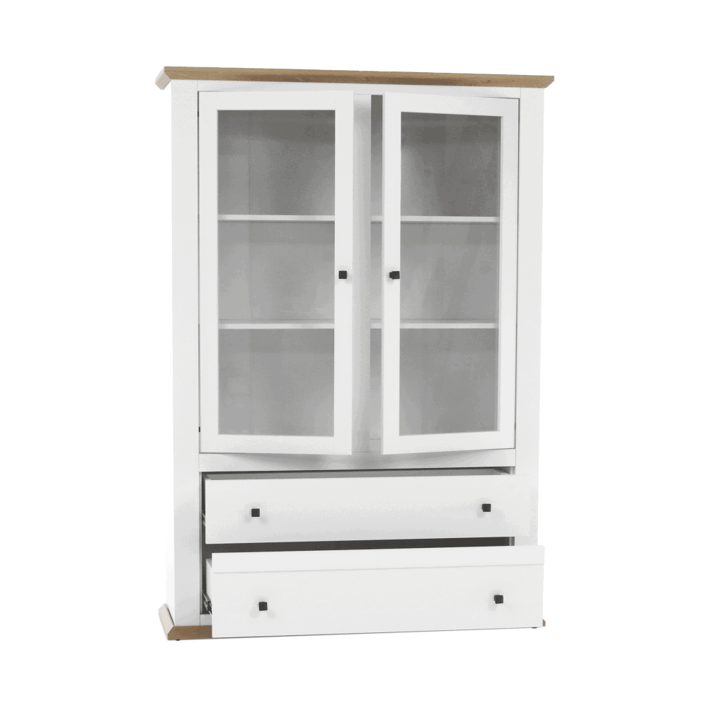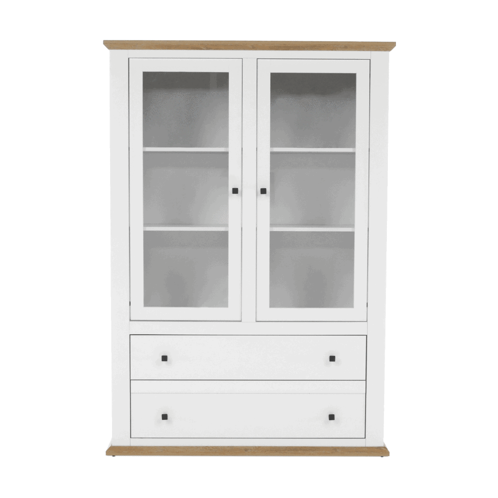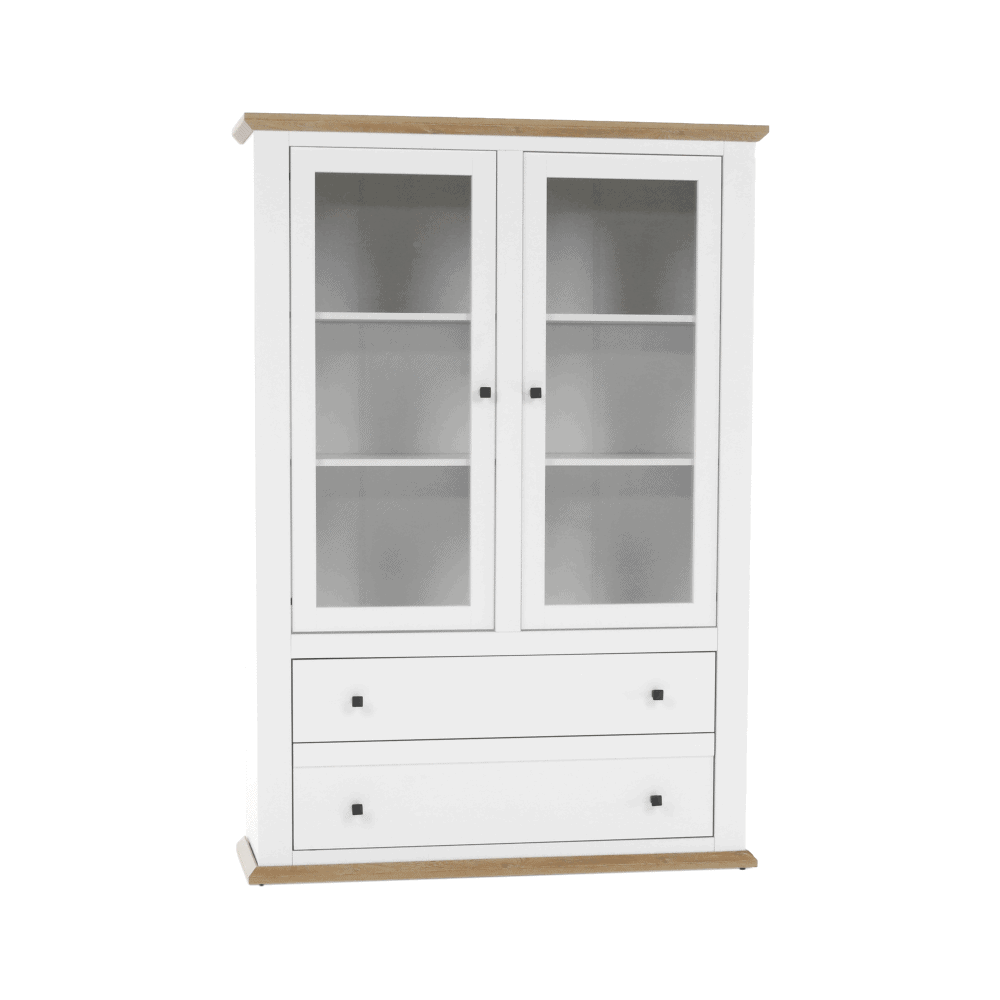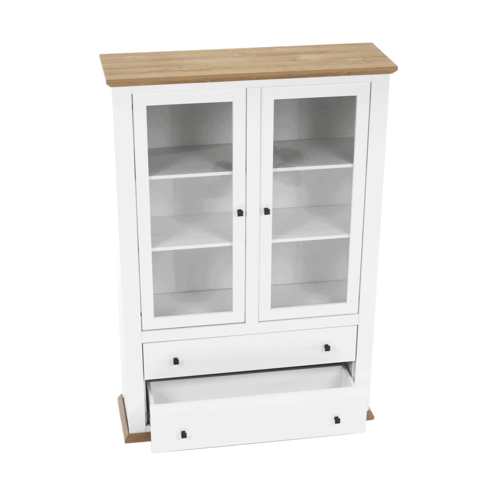 Vitrină MZ5, alb / stejar grand, LEON