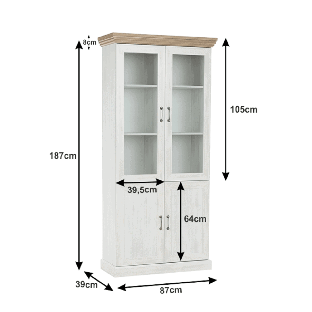 Vitrină W4D, cu patru uşi din ansamblul modular elegant Royal în stilul provensal.