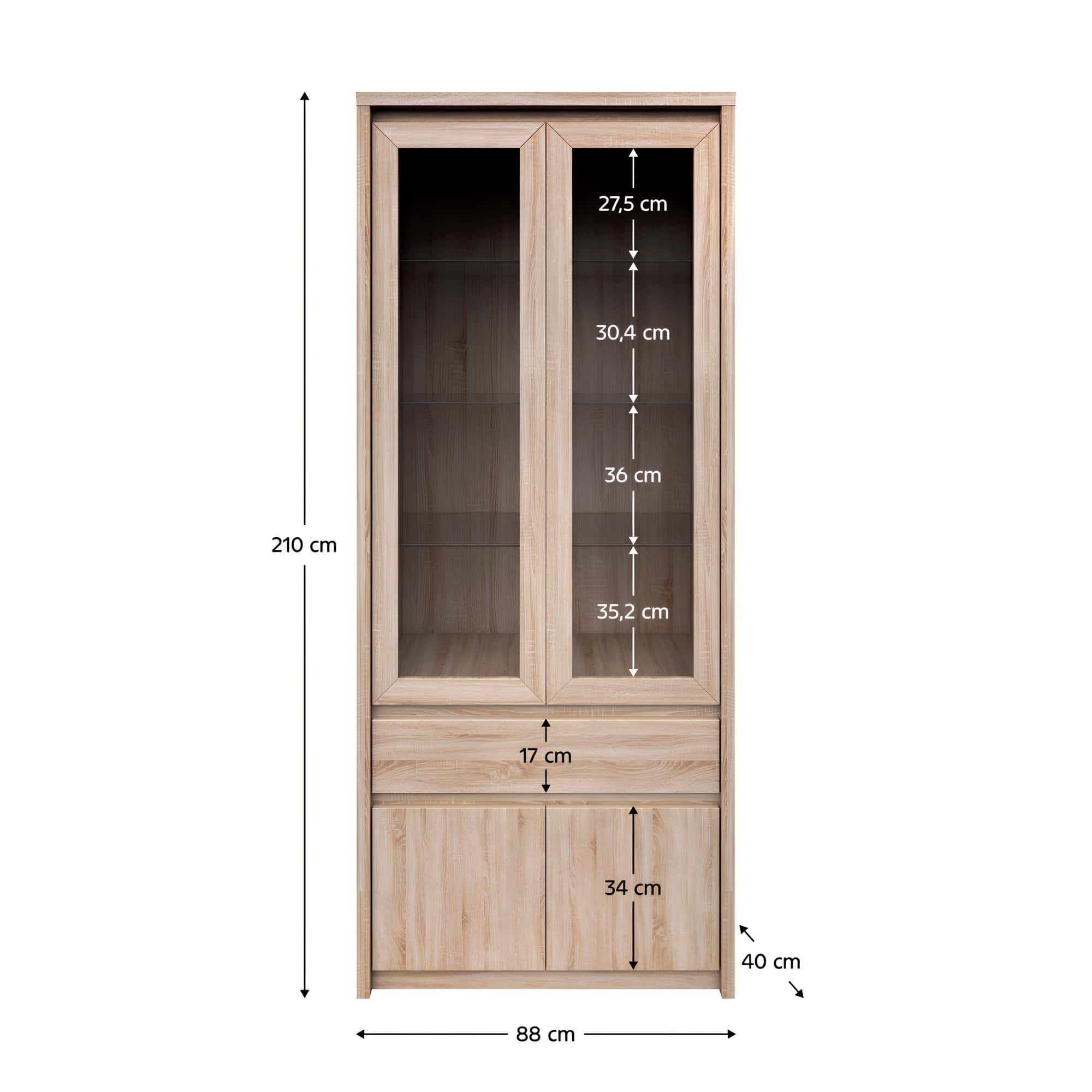 Vitrină TYP 3, PAL melaminat, stejar sonoma, NORTY